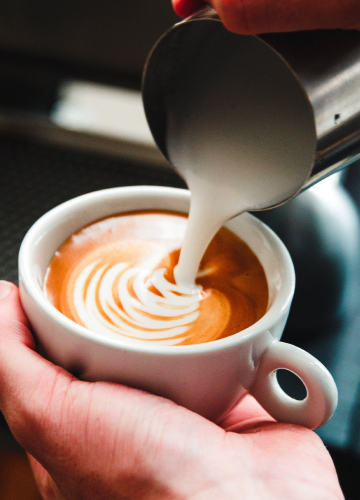 Every cup of coffee in this bakery is made with love and care and of the highest quality beans with only the best whipped cream and sugar. Even the milk designs are made with special care and you can choose from different designs.